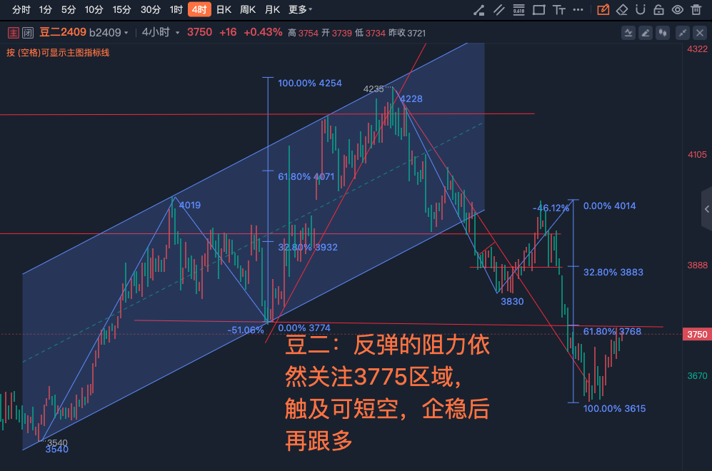 7.24豆二:反弹的阻力依然关注3775区域,触及可短空,企稳后再跟多