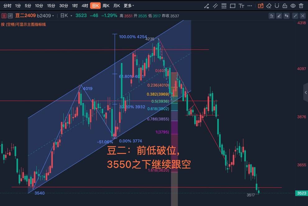 8.7豆二:前低破位,3550之下继续跟空