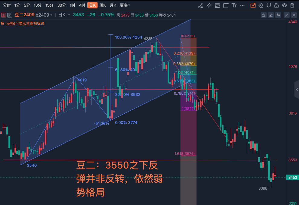 豆二:3550之下反弹并非反转,依然弱势格局