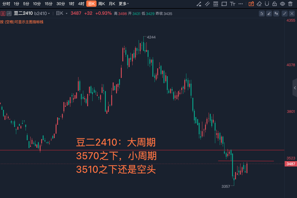 豆二2410:大周期3570之下,小周期3510之下还是空头