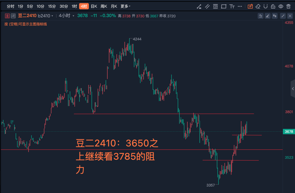 9.9豆二2410:3650之上继续看3785的阻力