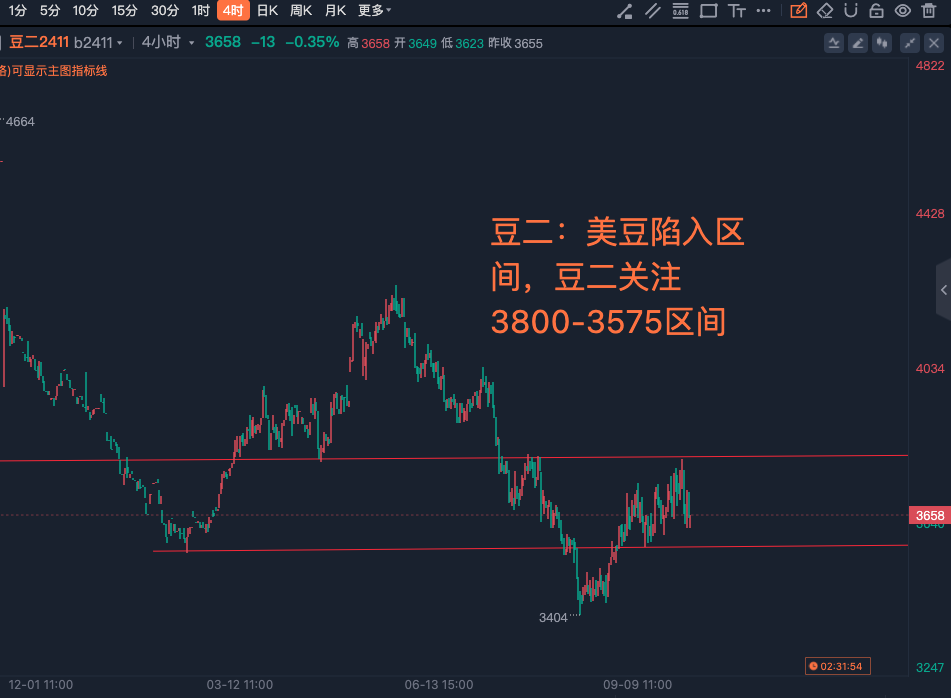 豆二:美豆陷入区间,豆二关注3800-3575区间