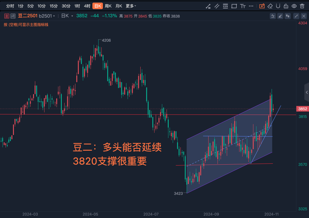 11-11豆二:多头能否延续3820支撑很重要