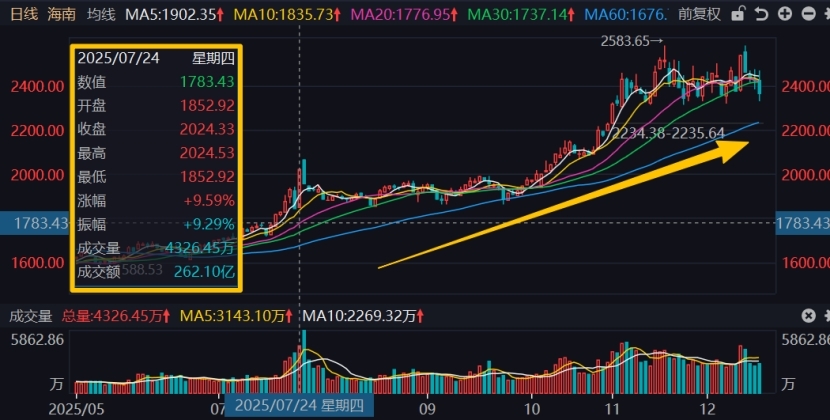 时间拉回到近五个月前。2025年7月24日,封关日期被官宣,海南板块上演了真正的狂欢。当天,海南板块指数暴涨超9%,超过20只本地股涨停,资金净流入超过35亿元,市场情绪沸腾。市场在用真金白银,为封关这个巨大的政策利好提前下注。毕竟,按照A股的老传统,政策节点前炒预期是经典戏码。