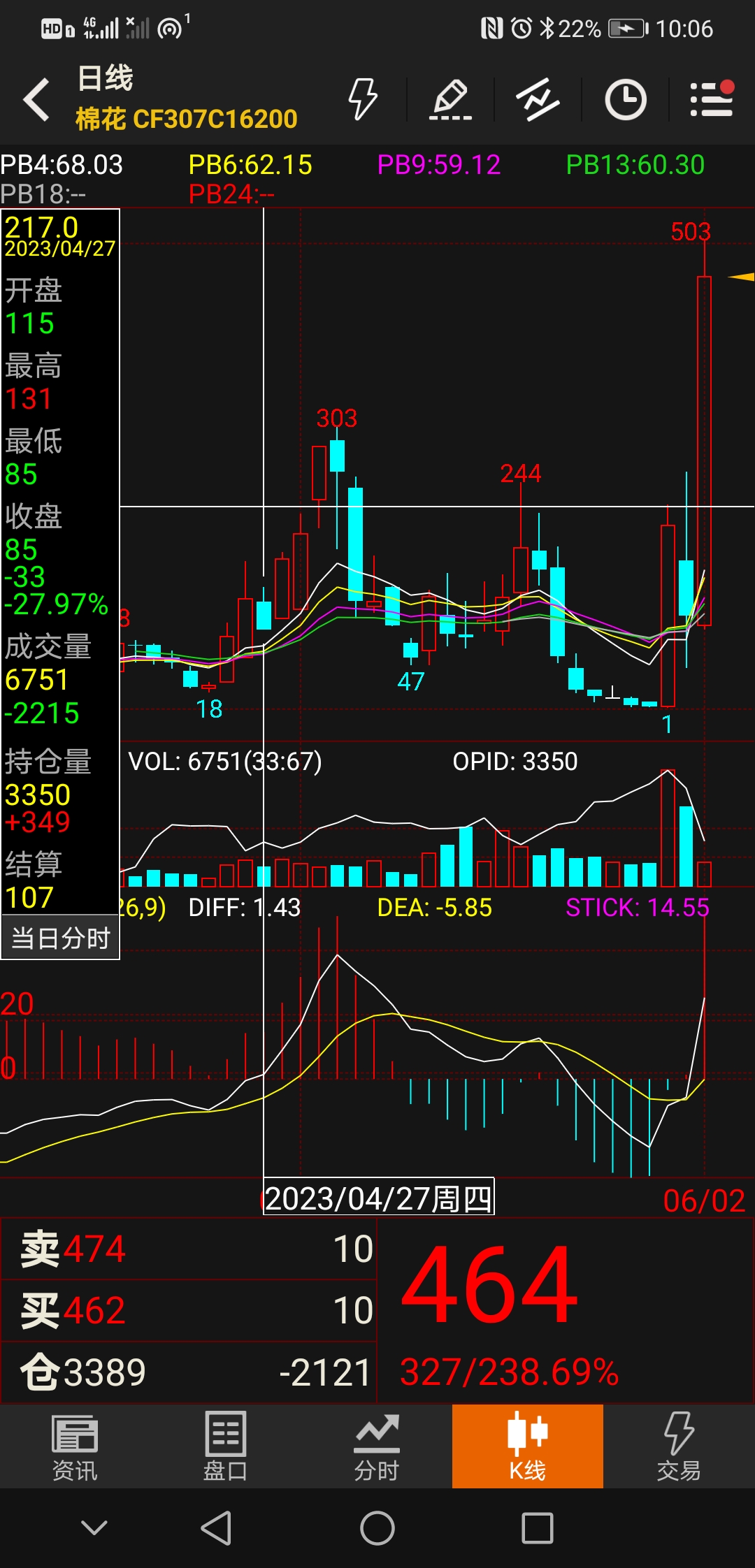 棉花看涨期权末日轮,最后三天,两天出现一次200倍行情和一次100倍行情,实在猛