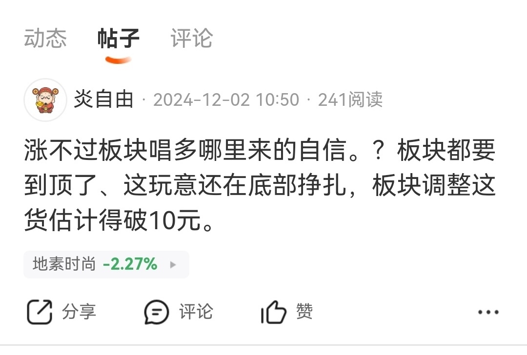 温馨提示: 1.根据《证券法》规定,禁止编造、传播虚假信息或者误导性信息,扰乱证券市场;2.用户在本社区发表的所有资料、言论等仅代表个人观点,与本网站立场无关,不对您构成任何投资建议。用户应基于自己的独立判断,自行决定证券投资并承担相应风险。《东方财富社区管理规定》