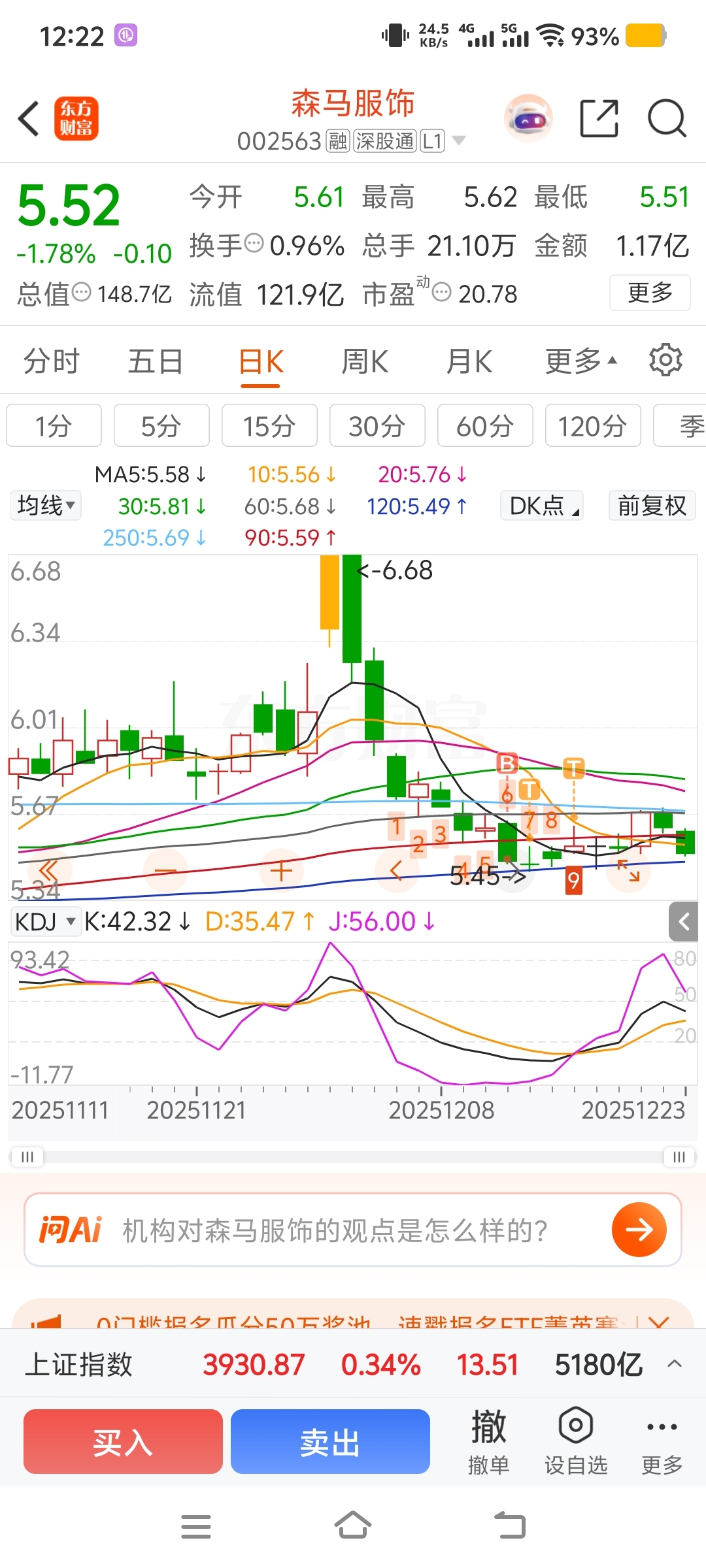 $纺织服装(BK0436)$ 服装板块涨的时候森马不跟,跌的时候跌了板块的好几倍,板块回去他都不回去