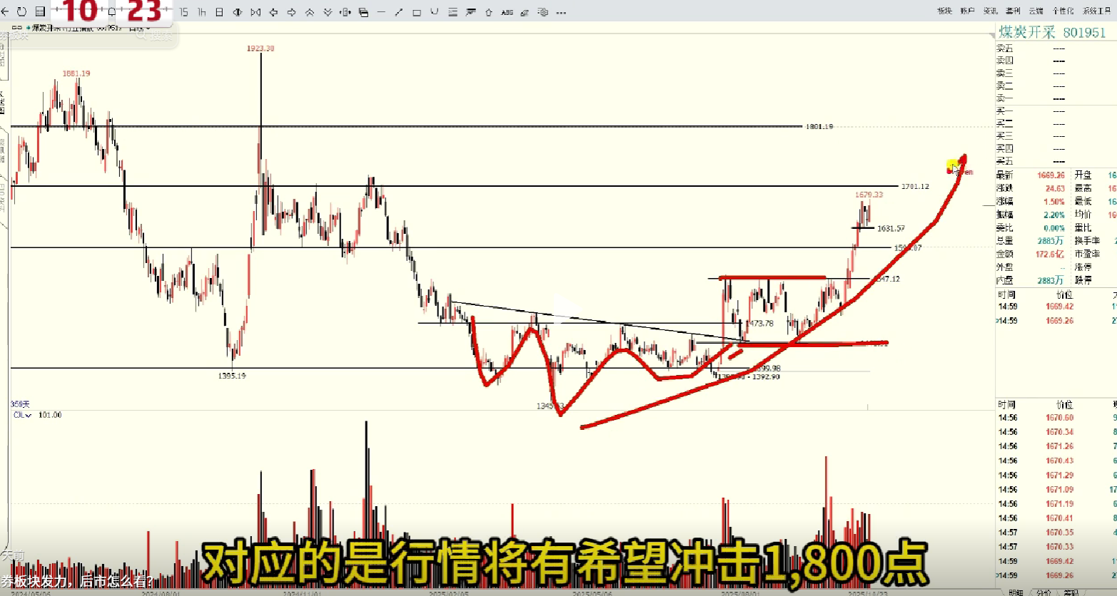 头肩底形态,加上横盘震荡,上攻后横盘,继续看涨