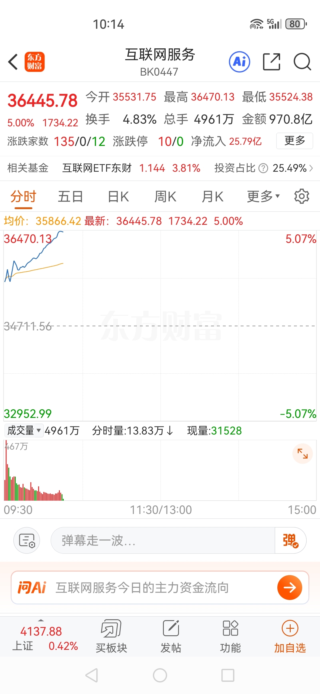 $互联网服务(BK0447)$ 看看板块,其实新华都不不强势,板块带起来的。