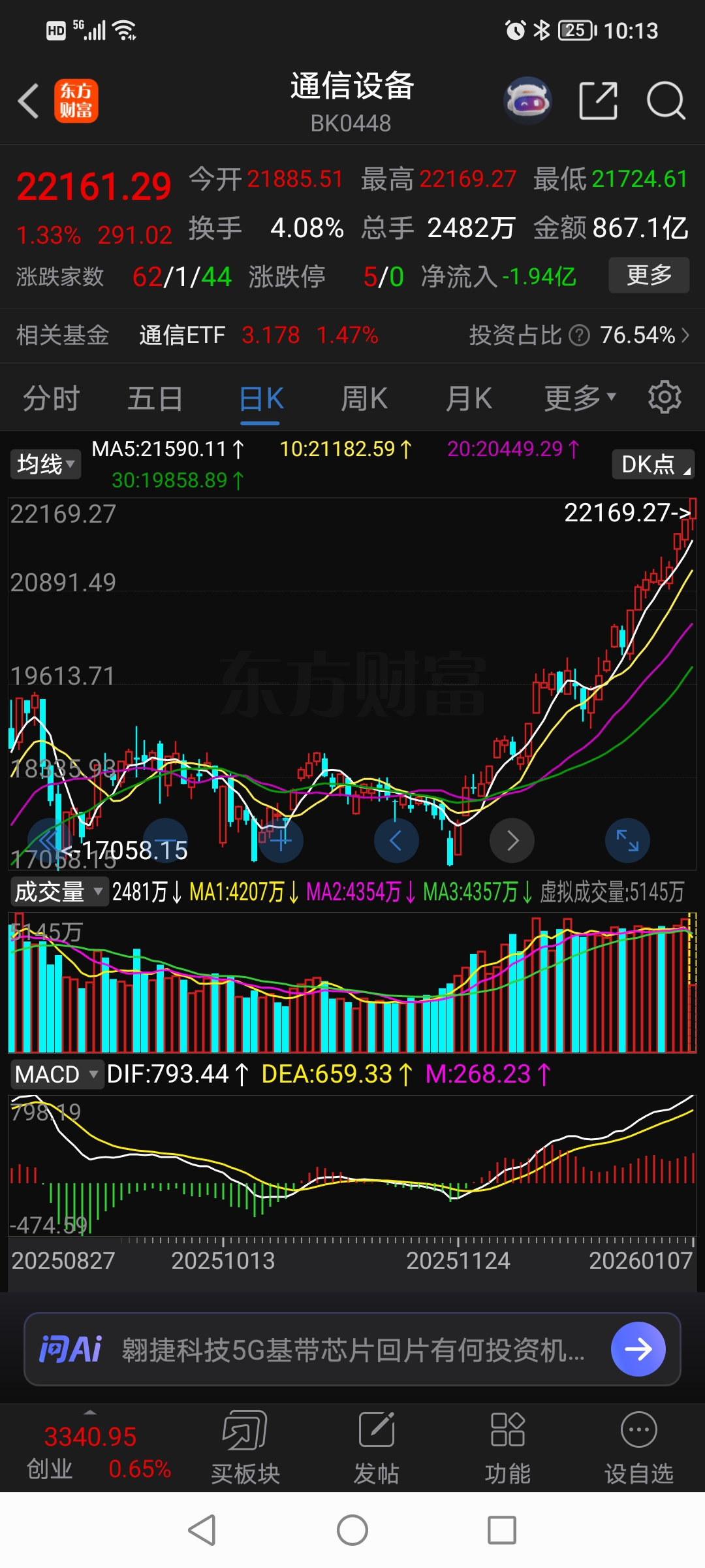 通讯设备板块继续大涨,大富科技在补跌