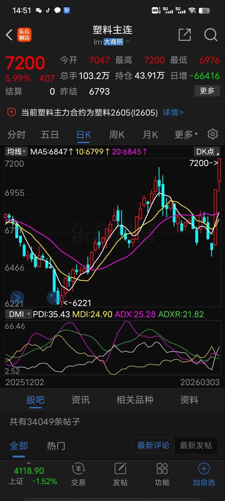 $塑料(BK0454)$ 期货塑料连续爆涨,幅度远超原油天然气