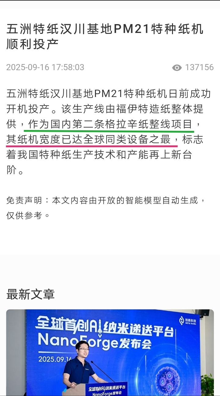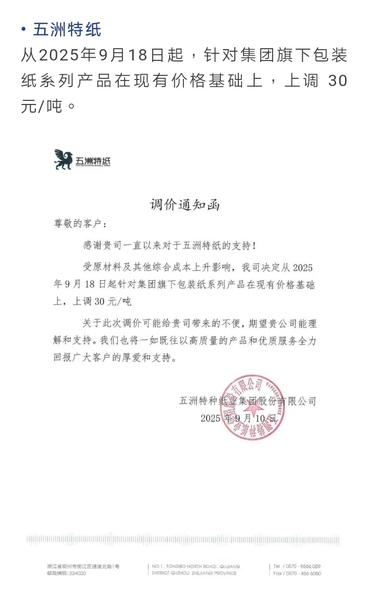 重磅!涨价函利好!五洲特纸!设备世界之最!