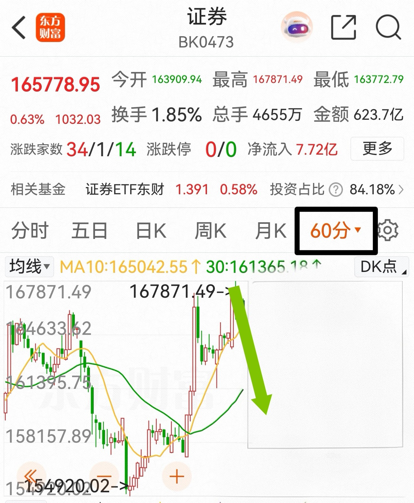 证券:预判板块指数60分钟K线回撤到30均线,再看会不会止跌。
