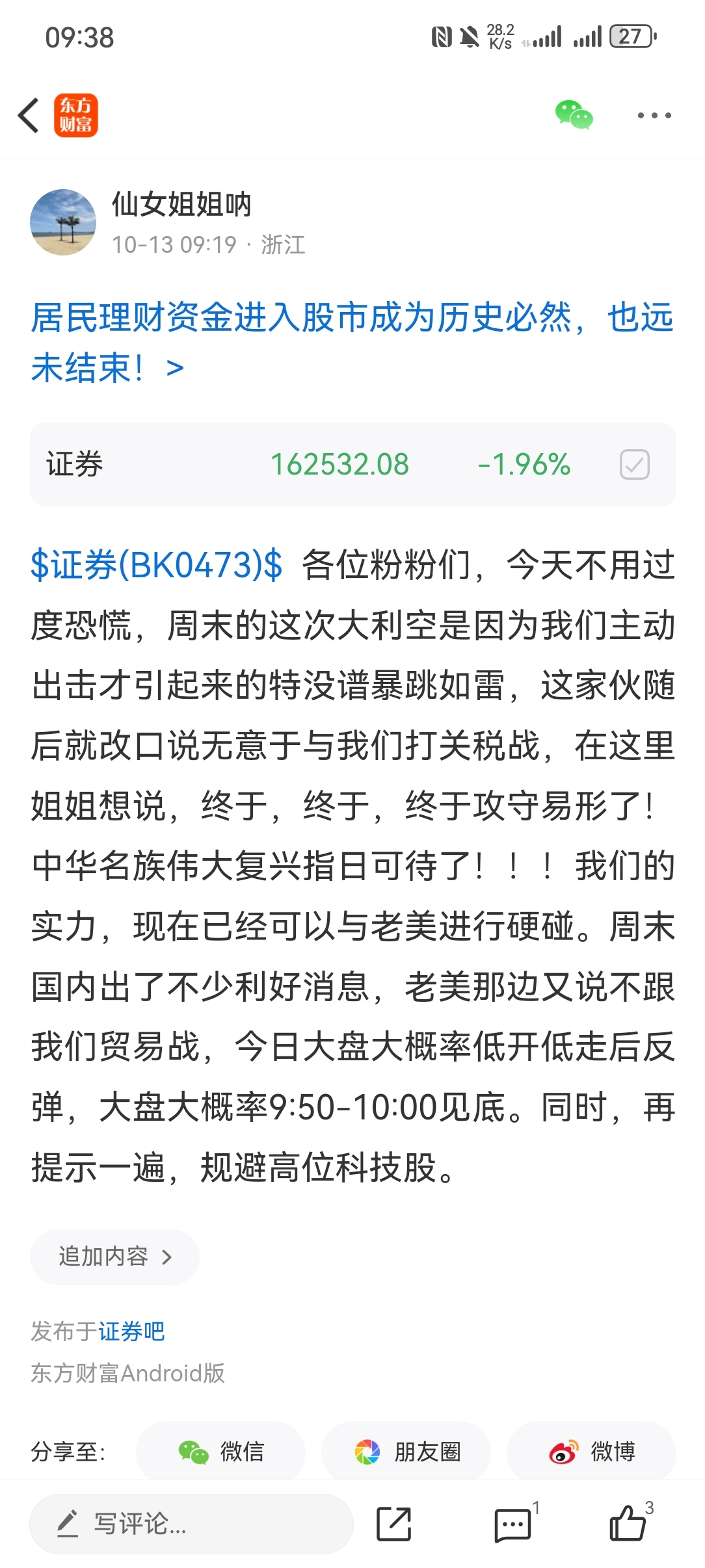 温馨提示: 1.根据《证券法》规定,禁止编造、传播虚假信息或者误导性信息,扰乱证券市场;2.用户在本社区发表的所有资料、言论等仅代表个人观点,与本网站立场无关,不对您构成任何投资建议。用户应基于自己的独立判断,自行决定证券投资并承担相应风险。《东方财富社区管理规定》
