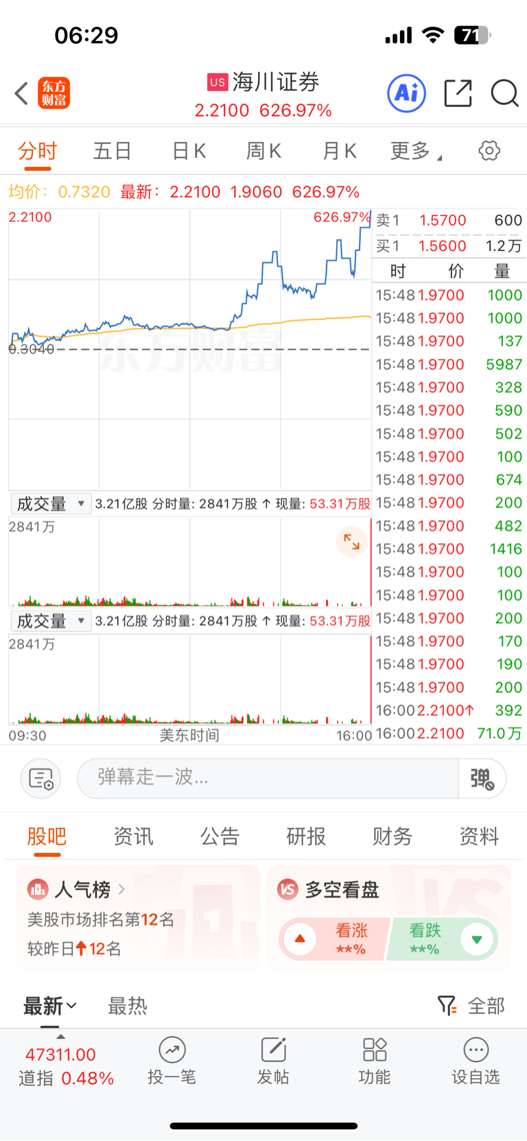 $证券(BK0473)$ 美股中概股海川证券暴涨600%多