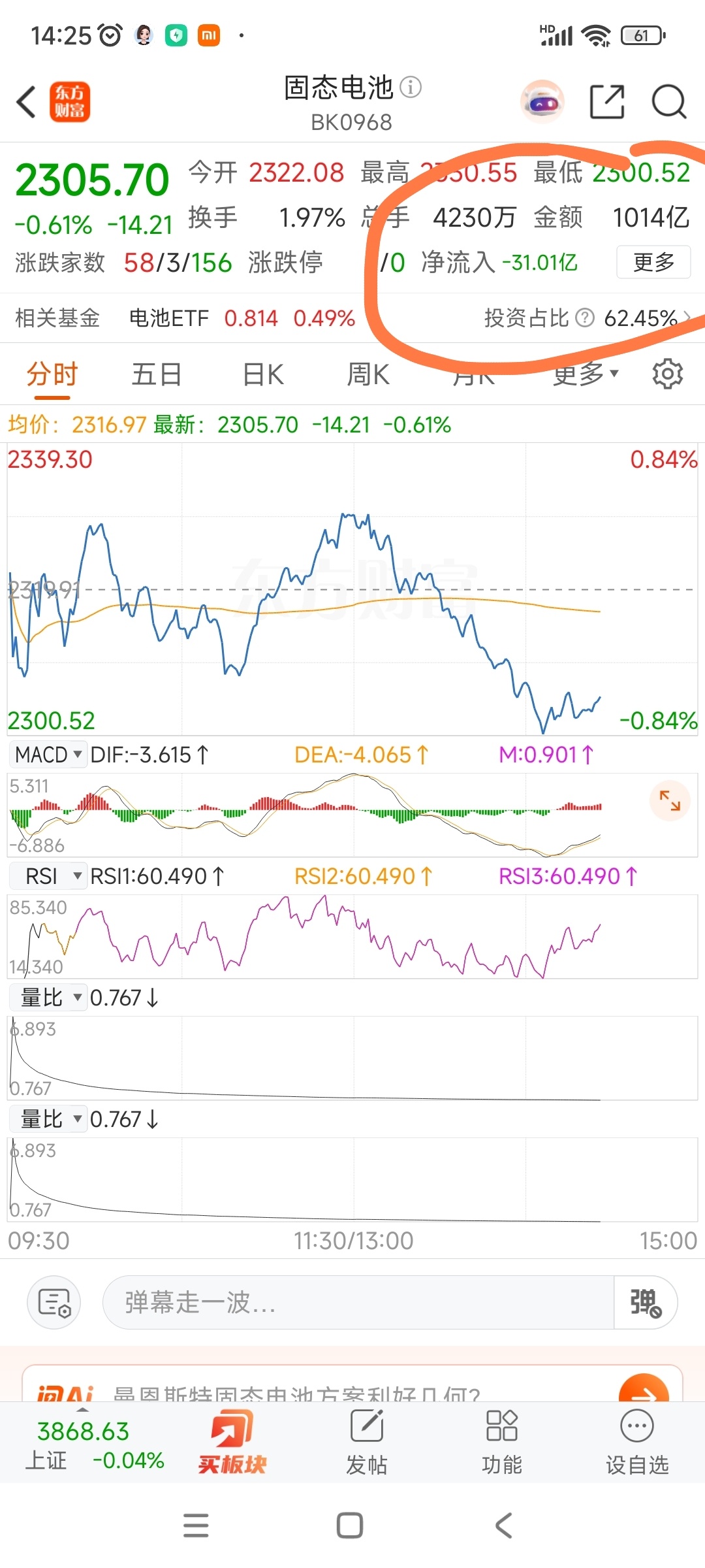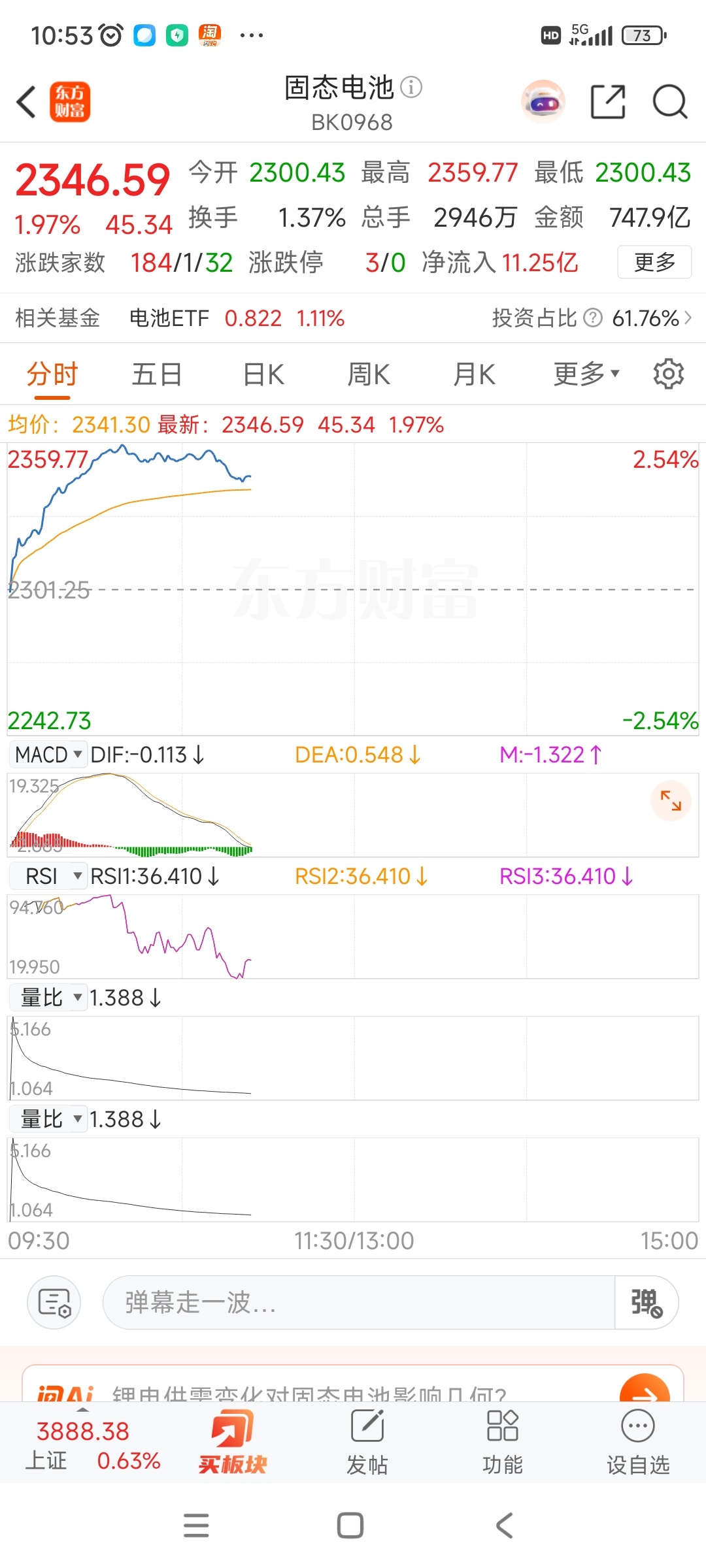 是板块的总成交量,平均下来是2亿/1个票,可怜吗?看看电池板块的成交量,目前是8