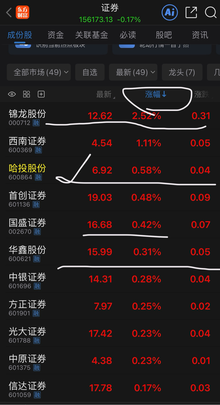 新龙头期待券商:哈投股份。整个券商股业绩大幅增长,又不敢拉指数。中小券商股集体上