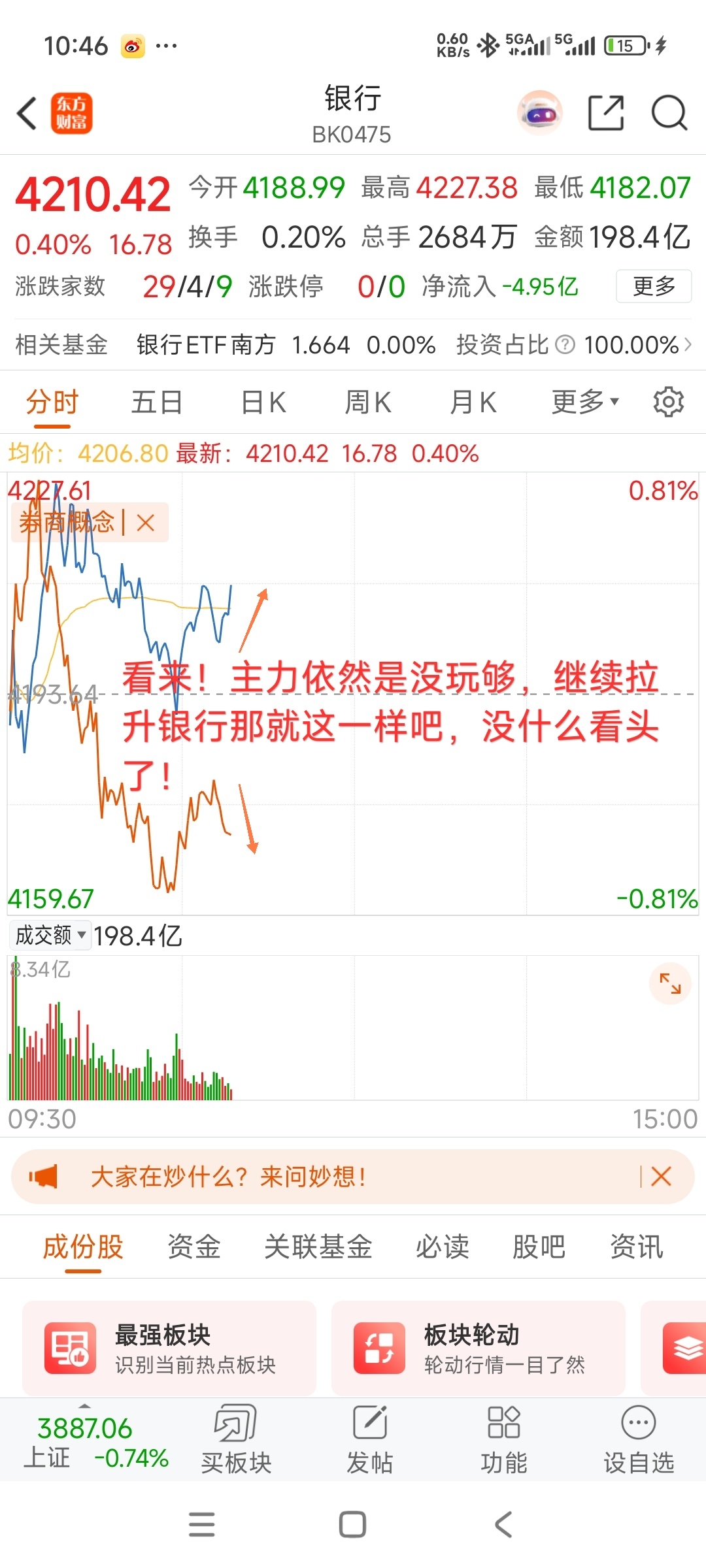 看来!主力依然是没玩够,继续拉升银行那就这一样吧,没什么看头了!