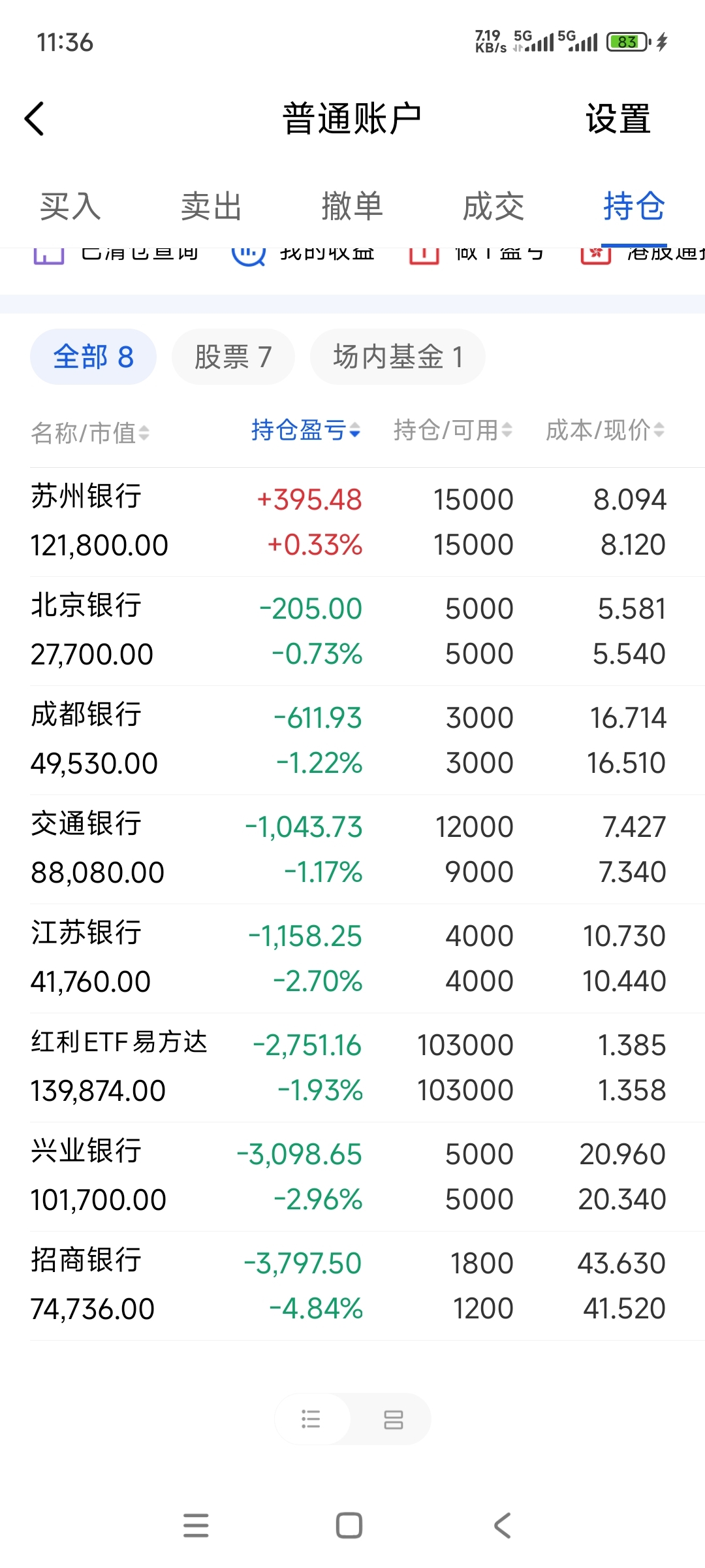 $银行(BK0475)$ 仓位打满了,成功把我套成耐心资本了。你要拉起来我就卖掉一点做一做T,继续跌我就只能等分红补仓了