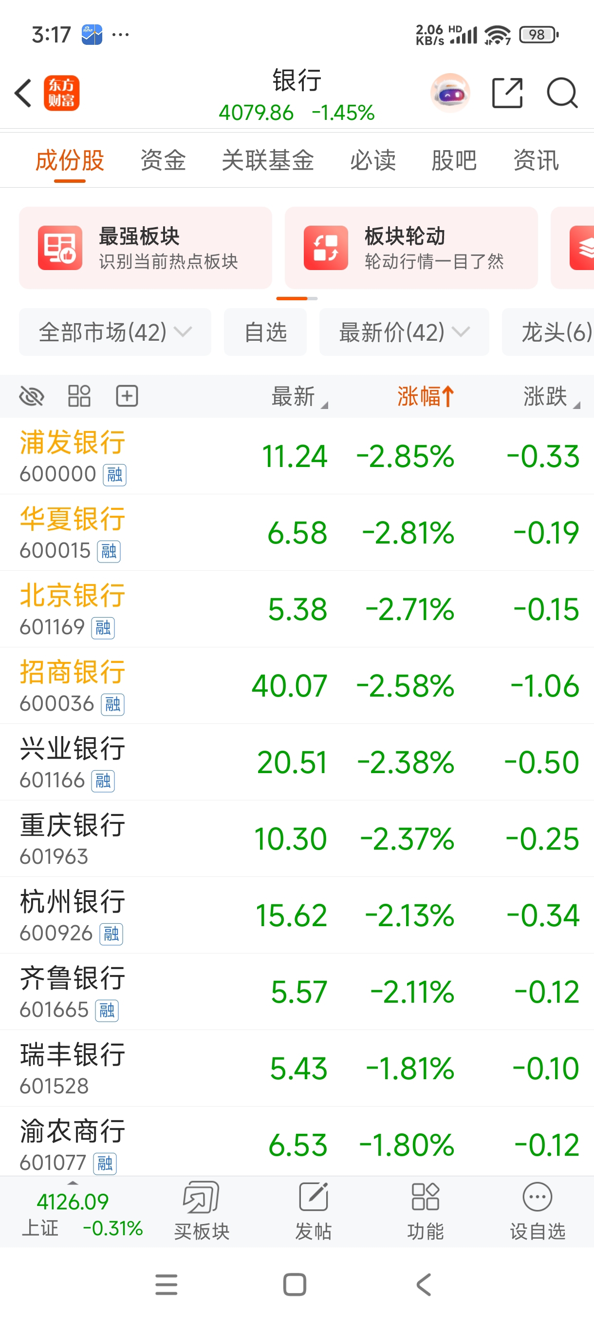 $银行(BK0475)$ 倒数的几个兄弟全是大卖单压盘
