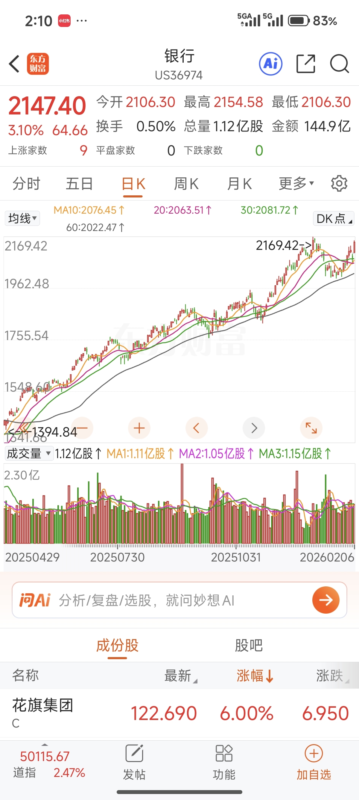 $银行(BK0475)$ 科技我不知道,美股银行快新高了,银行也是我们比人家唯一有性价比的板块。