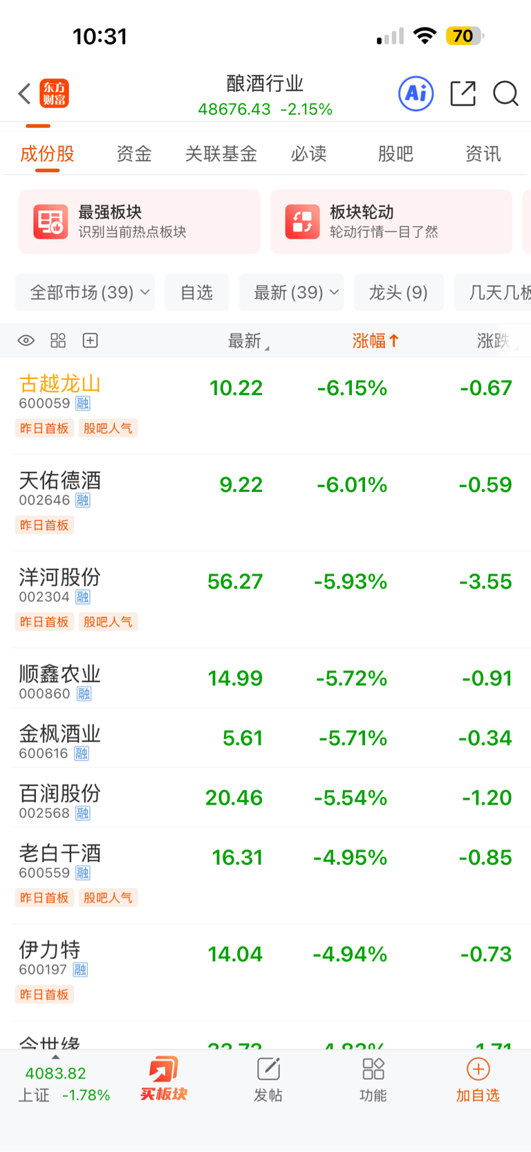 $酿酒行业(BK0477)$ 倒数第一 牛