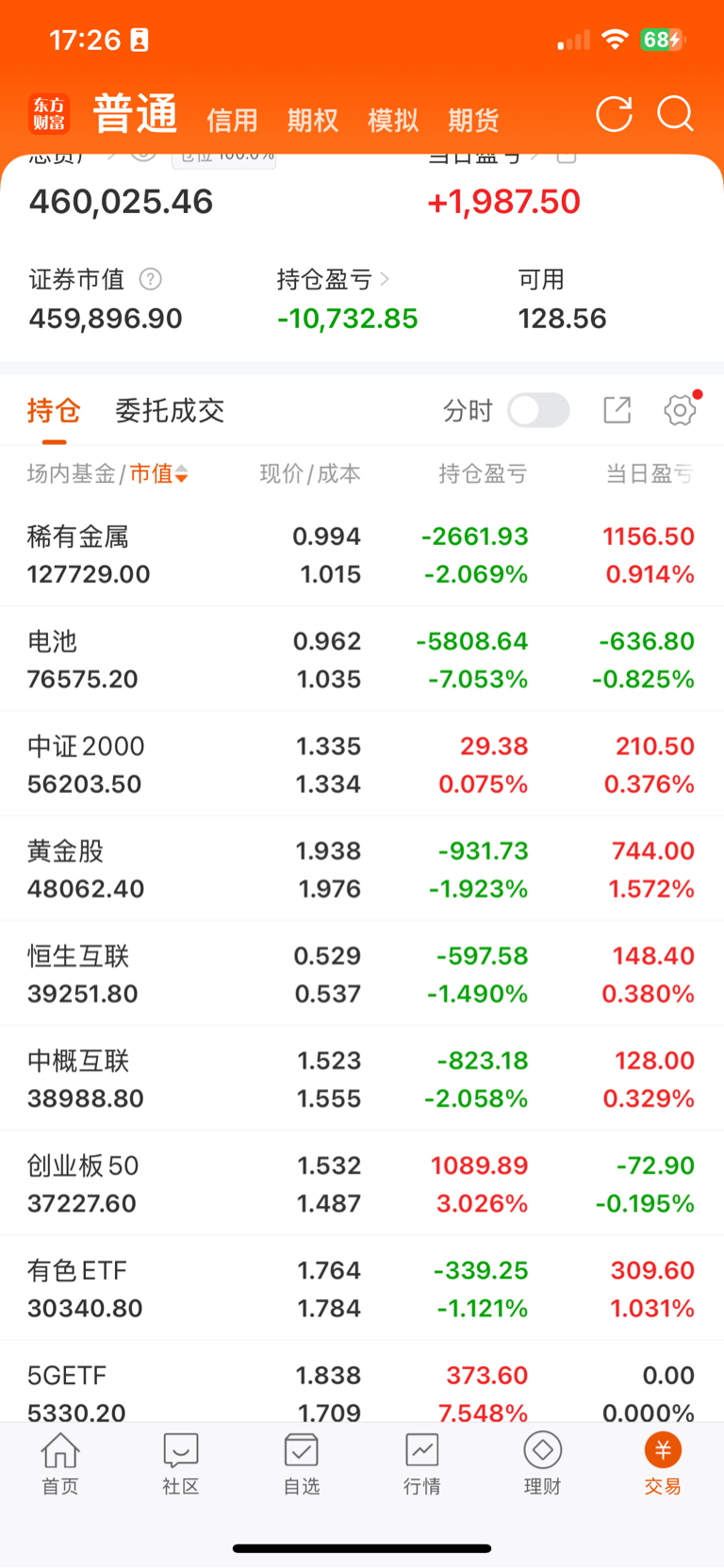 ETF实盘+1987元,持仓盈亏-10732元,最新市值46万