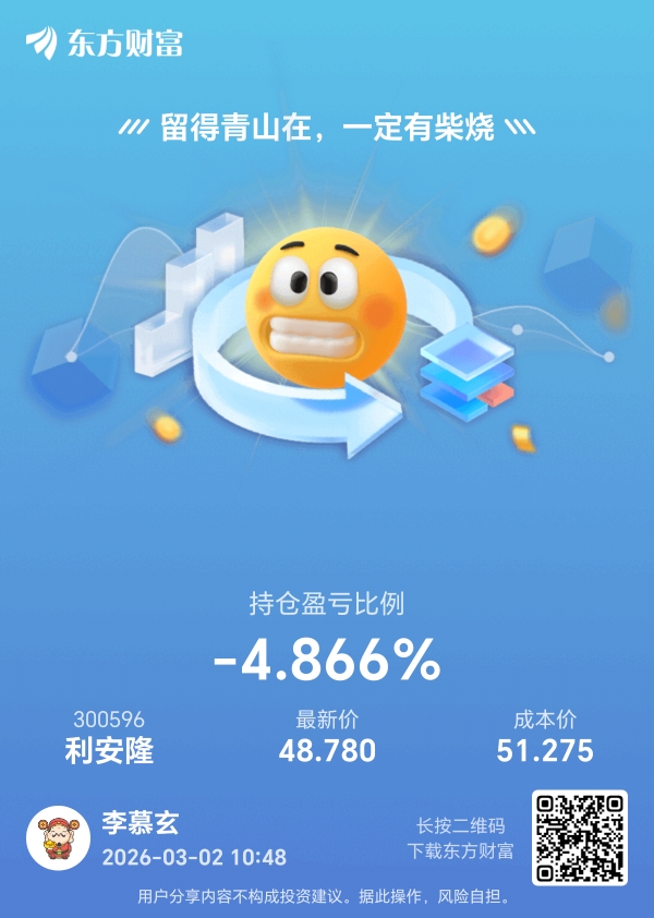 温馨提示: 1.根据《证券法》规定,禁止编造、传播虚假信息或者误导性信息,扰乱证券市场;2.用户在本社区发表的所有资料、言论等仅代表个人观点,与本网站立场无关,不对您构成任何投资建议。用户应基于自己的独立判断,自行决定证券投资并承担相应风险。《东方财富社区管理规定》
