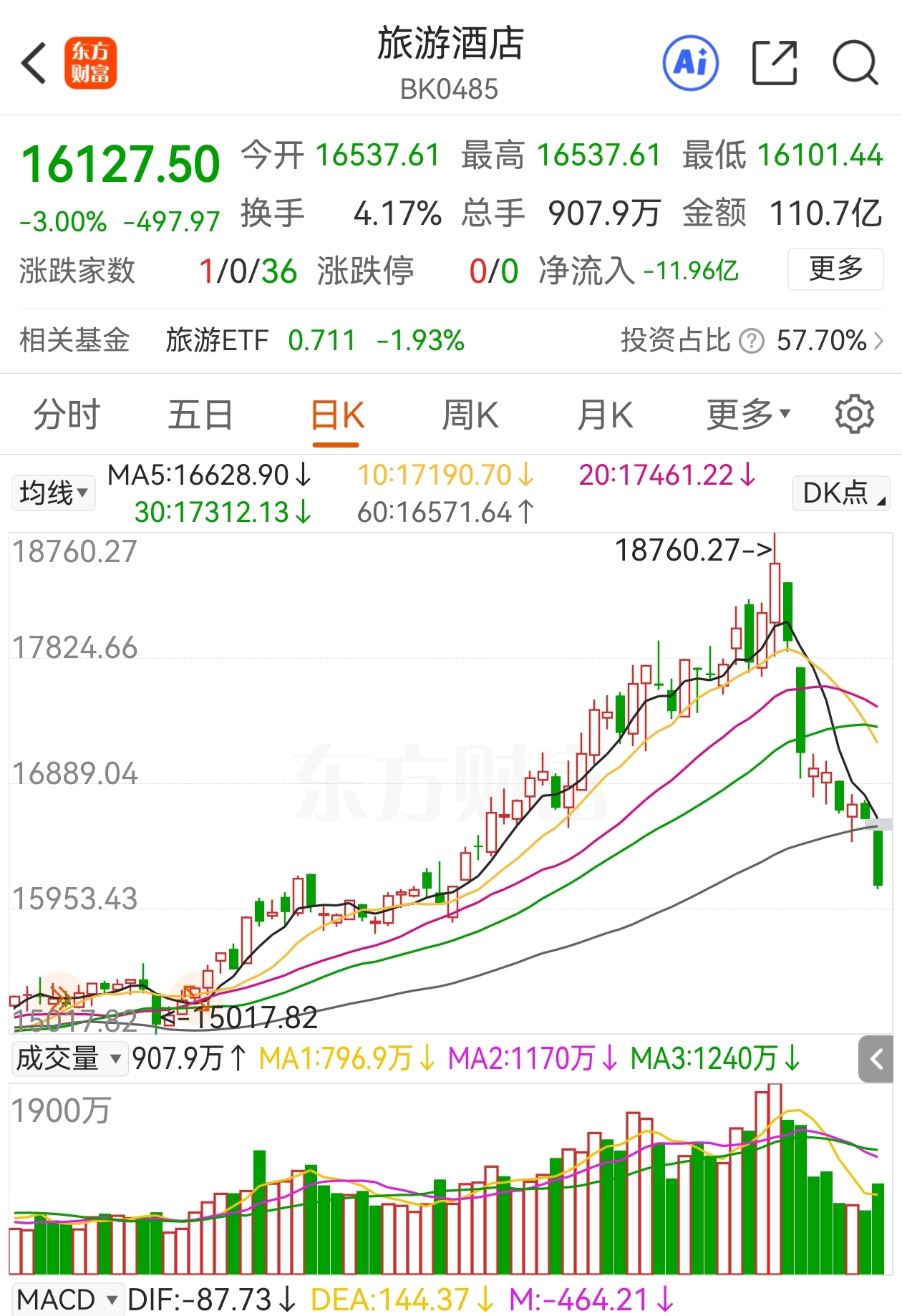$旅游酒店(BK0485)$ 跟着板块在走啊,没话讲。