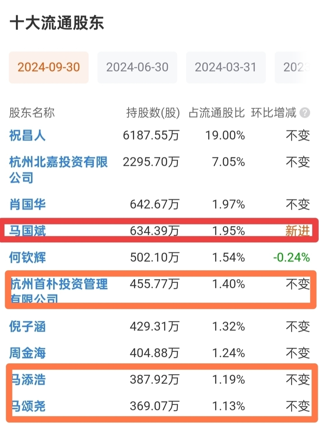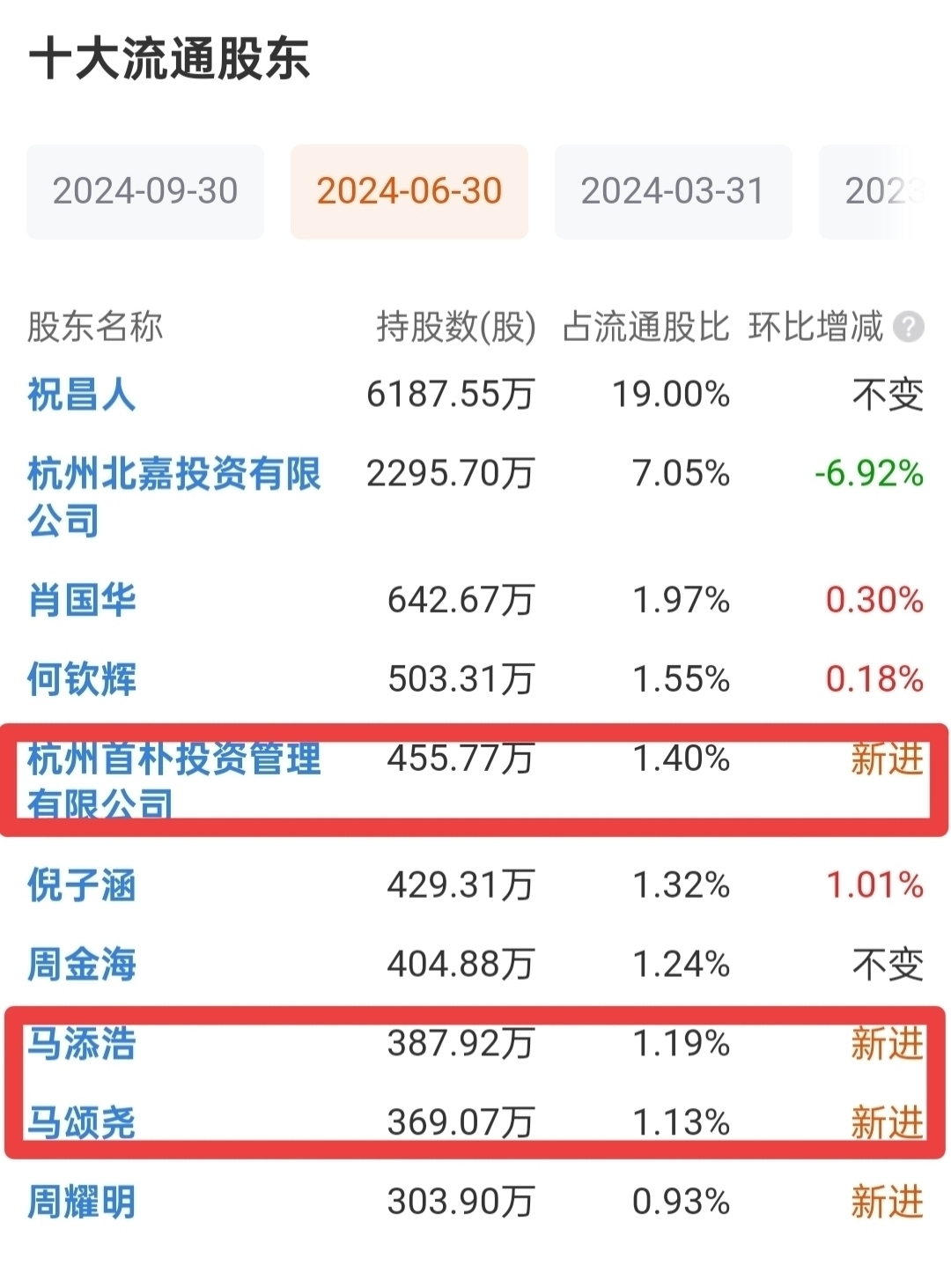 2024年半年报显示,杭州首朴与关联人马添浩、马颂尧二级市场买入股份合计占公司总股本3.72%。