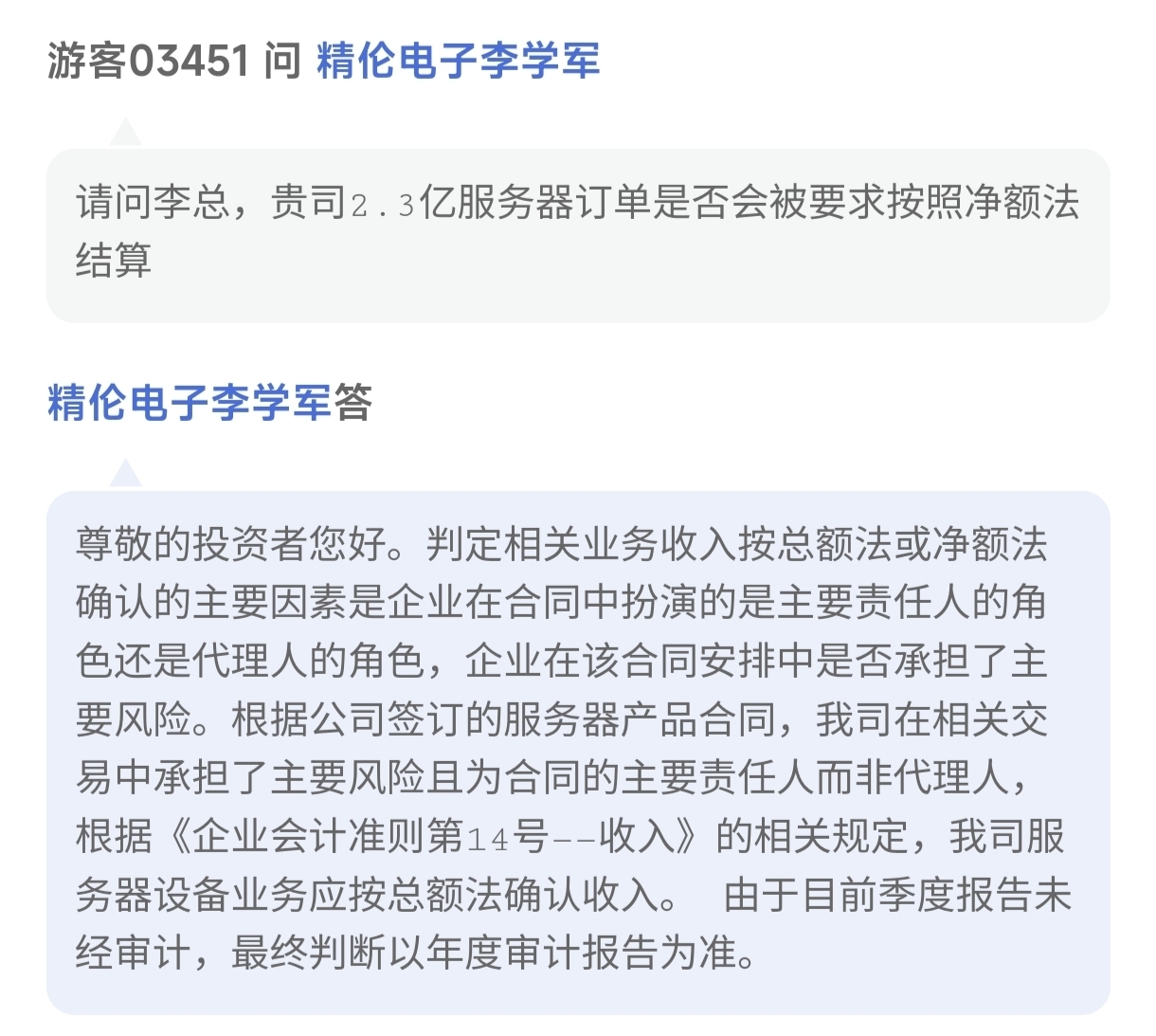 精伦的订单涉及国家机密和商业秘密,已公告信息豁免,符合监管。说精伦被立案调查的都是张口就来!现在监管严,稍微有点异常监管函就来了!还有一些反智言论,说监管函下来了,被公司扣留不发,这不是开玩笑吗?为了唱空简直是不择手段!