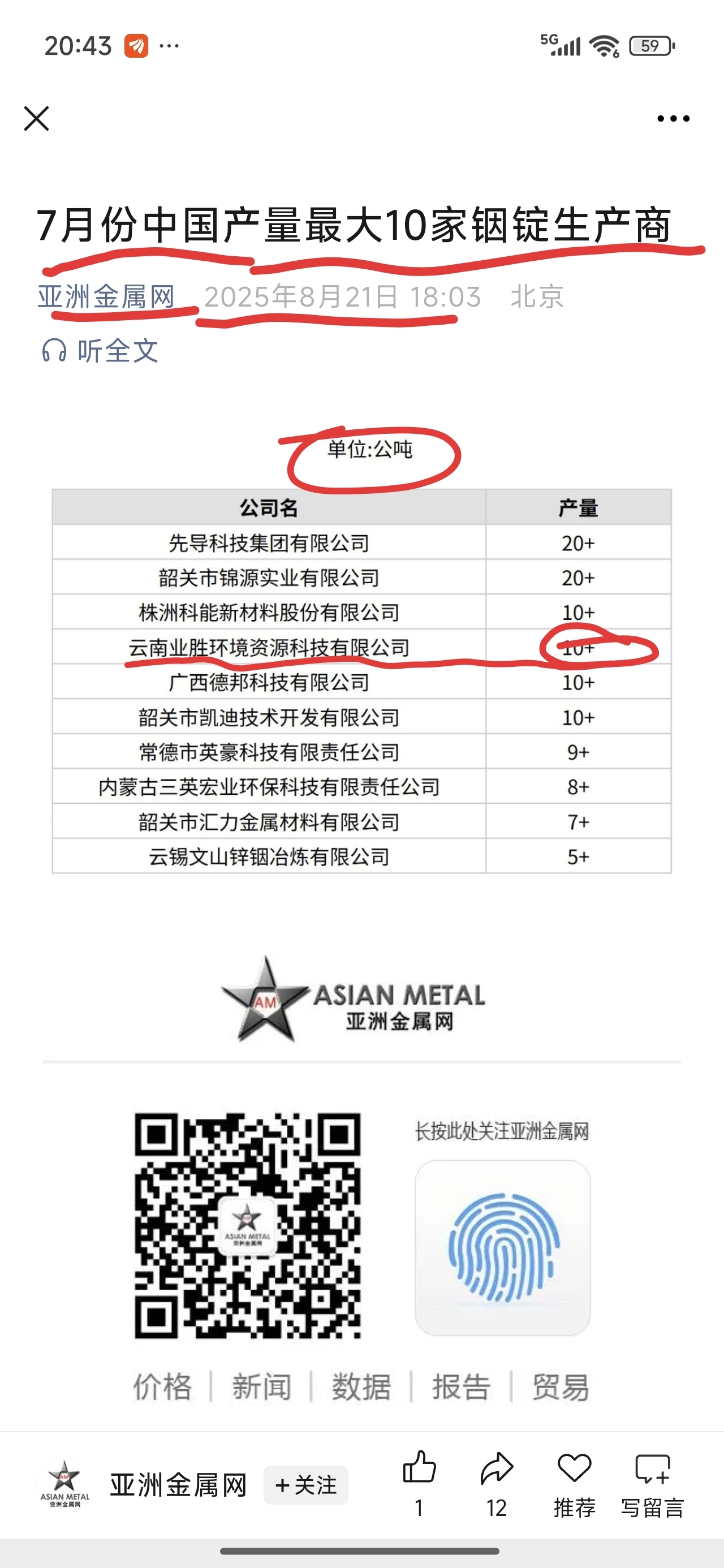 ,之前马老板说铟产量一天一吨,马老板语境历来是鑫联和京蓝一起的,鑫联铟产量多点,京蓝少点。