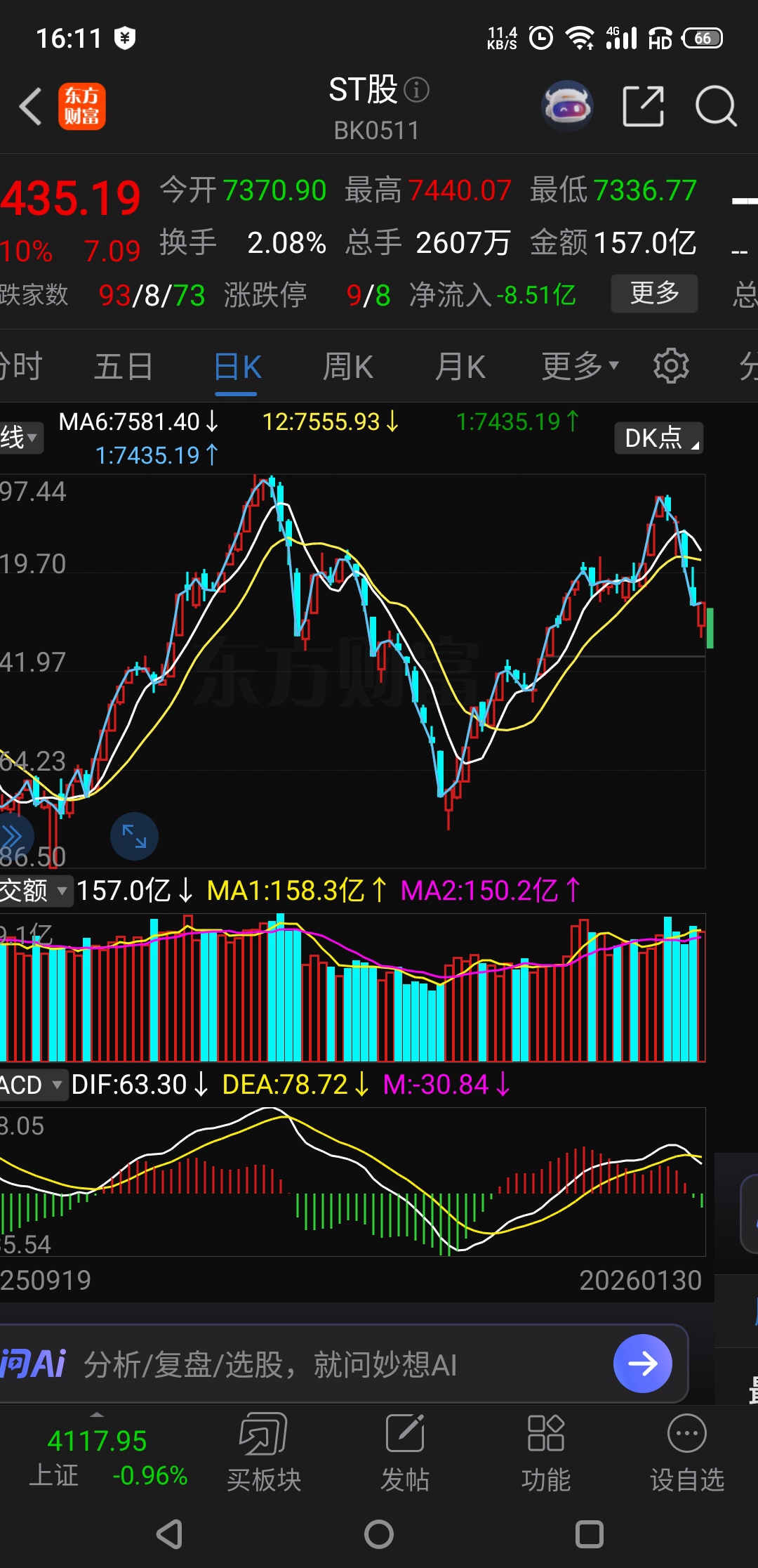 感觉下个星期一ST板块害得低开往下走!今天这反弹平台支撑不了下跌趋势!加上大盘这