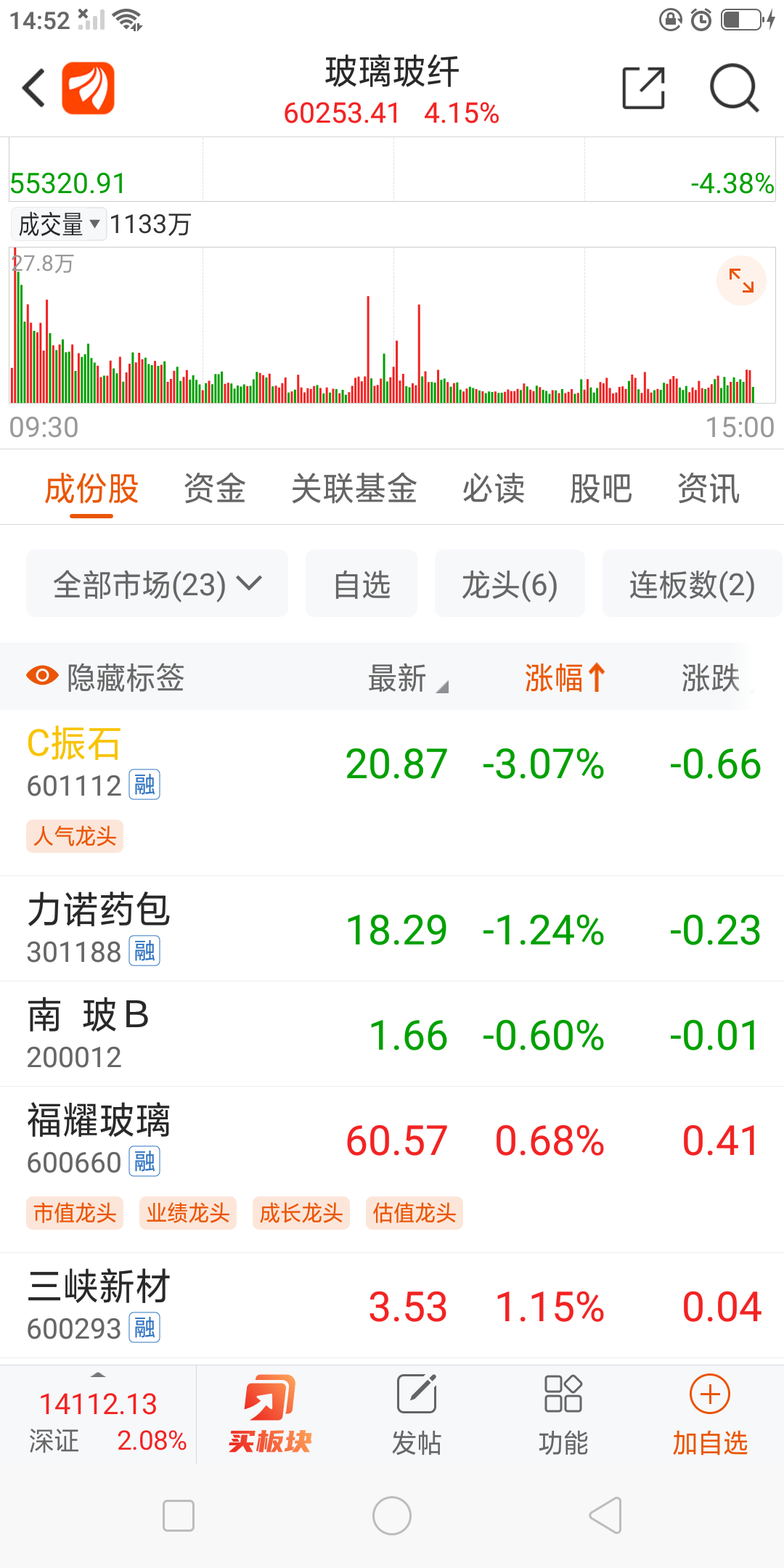 $玻璃玻纤(BK0546)$ 呵呵板块倒数第一你多牛批!
