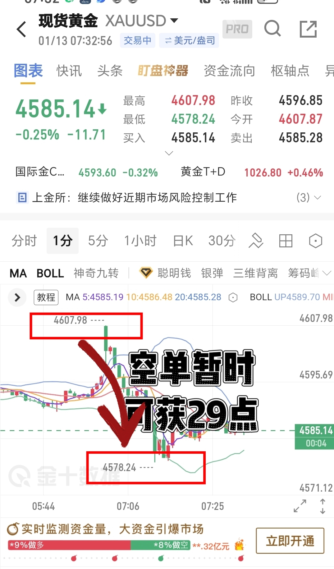 运气是留给有准备的人亚盘开盘金价上涨,提前铺路说了反弹空石盘空25㸃离场。等反弹