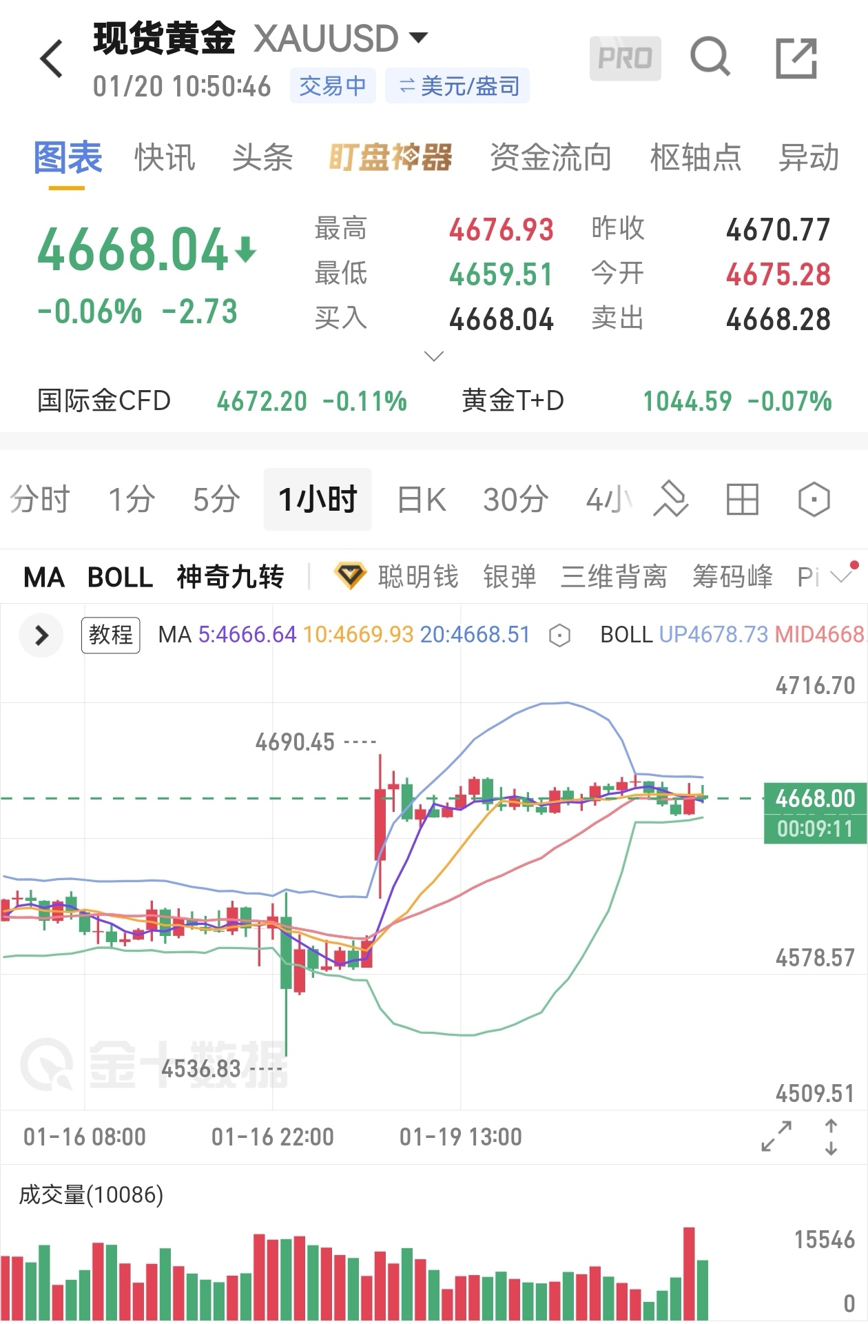 目前黄金技术点位继续关注上方4690-4700压力带,下方则着重关注5日线463