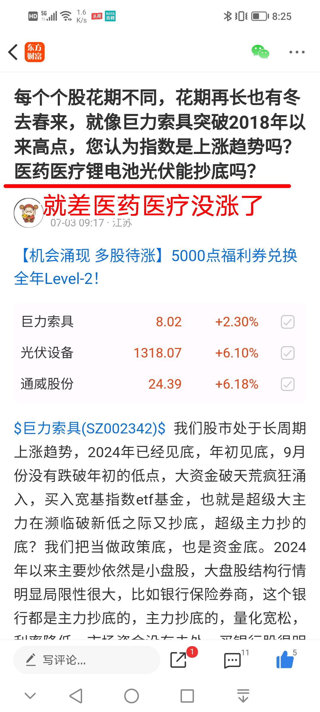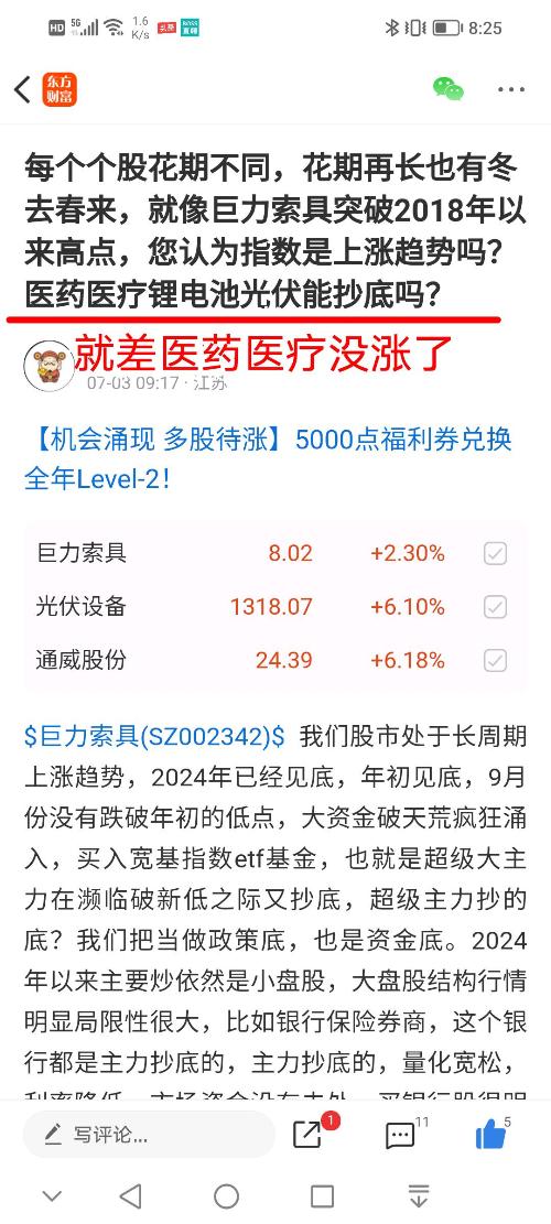 有了前面分析?这些细分重大板块,2024年9月上涨以后,再度回踩下来,反复筑底,是合适抄底的,也是应该要抄底,因为随时波段反弹,随时涨停,再等待一个波段轮回至少几个月,半年多,去年9月涨,今年6月份都没多大反应,也就是半年多9个月,光伏设备昨天7月2日波段筑底开始出现大盘股涨停,这么长的周期等待?也是很难等?特别是你一直想做。等机会,天天看,天天等,人会失去耐心,耐不住寂寞,等出神经病,精神分裂,抑郁症等等,要么你等不了,耐不住寂寞,比如去年9月份没有入场,涨了以后入场,结果居然调整9个月?这么长时间,你可以每个交易日去犯错误,结果没想到9个月下来一直亏,亏的很多,以至于骂大街骂娘的,受不了神经病都来了,结果回头看原来她又跌回去了,跌回去就跌回去,这次又磨了很长一段时间筑底不涨,股吧里头满仓被套,亏损严重,亏损大的,等不起的,就骂声一片,如果去年涨了卖掉的,结果回头又回去了?他们又欣喜若狂,同样一个人,不同的资金,仓位操作,反过来心态也是相反的。$光伏设备(BK1031)$ $通威股份(SH600438)$