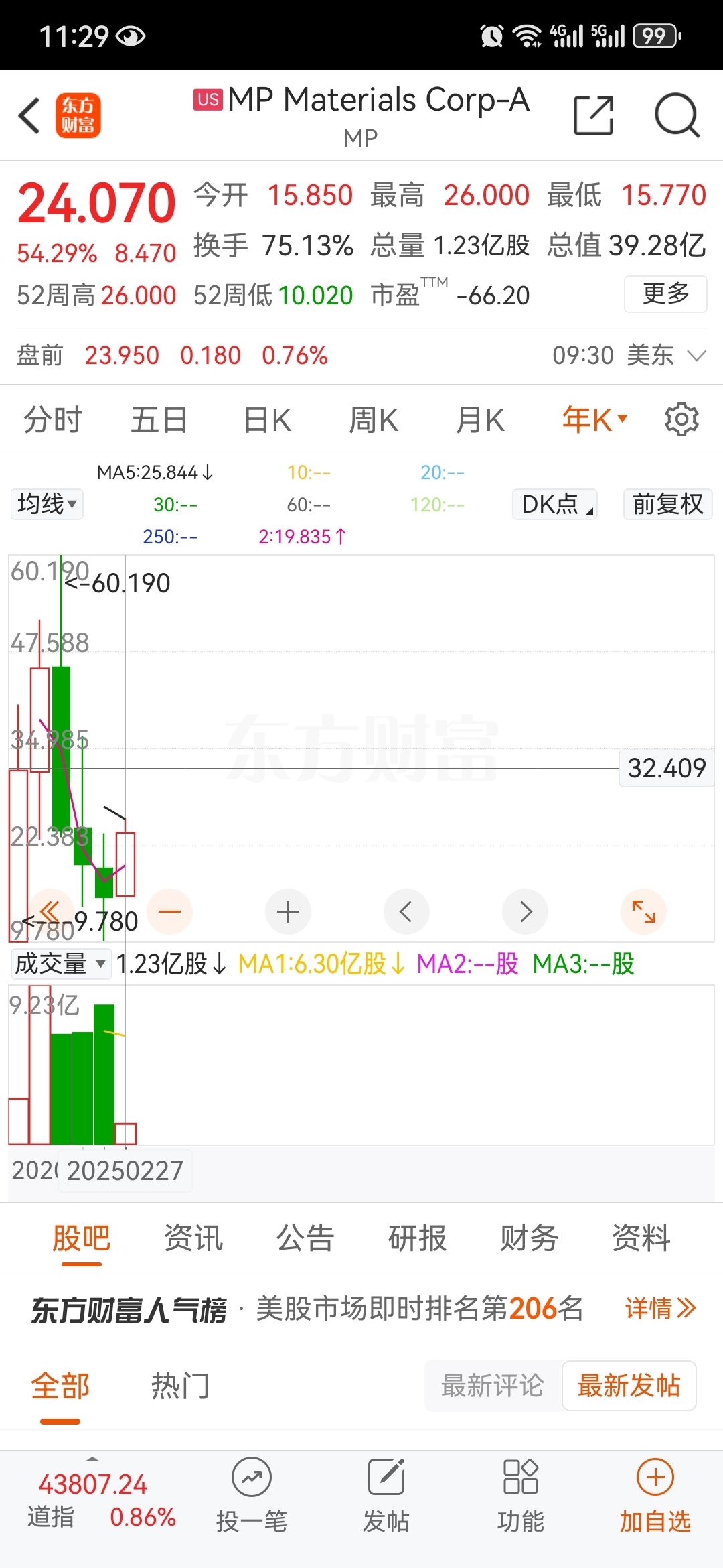 美国稀土生产商MPMaterialsCorp今年(2月27日晚)上涨了54%.大