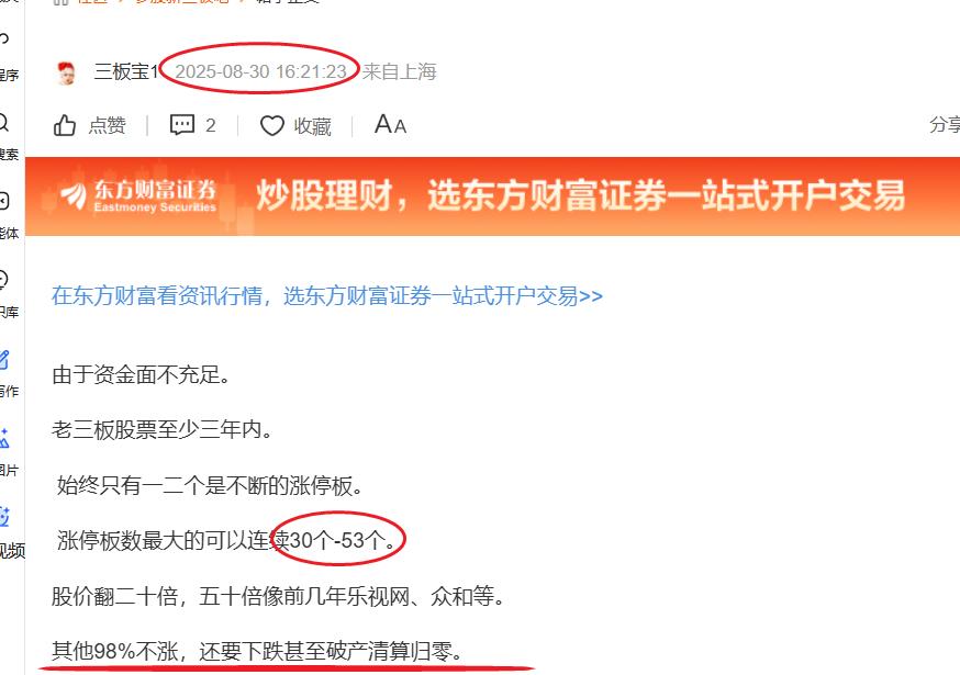 三板90%股票三年内都要到0.10元以下,甚至破产清算归零,极少数可以连续涨停板。