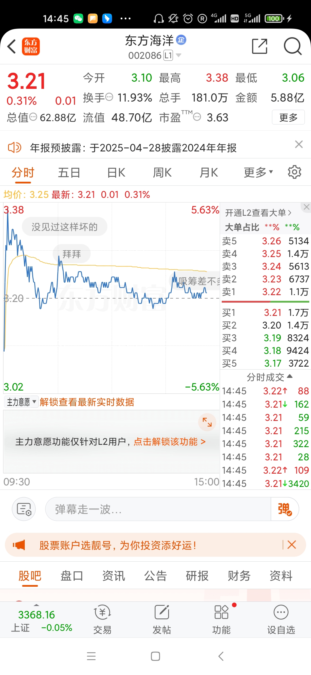 十万亿概念,四龙头,东方海洋,来游资收割,主力在亏钱打压股价