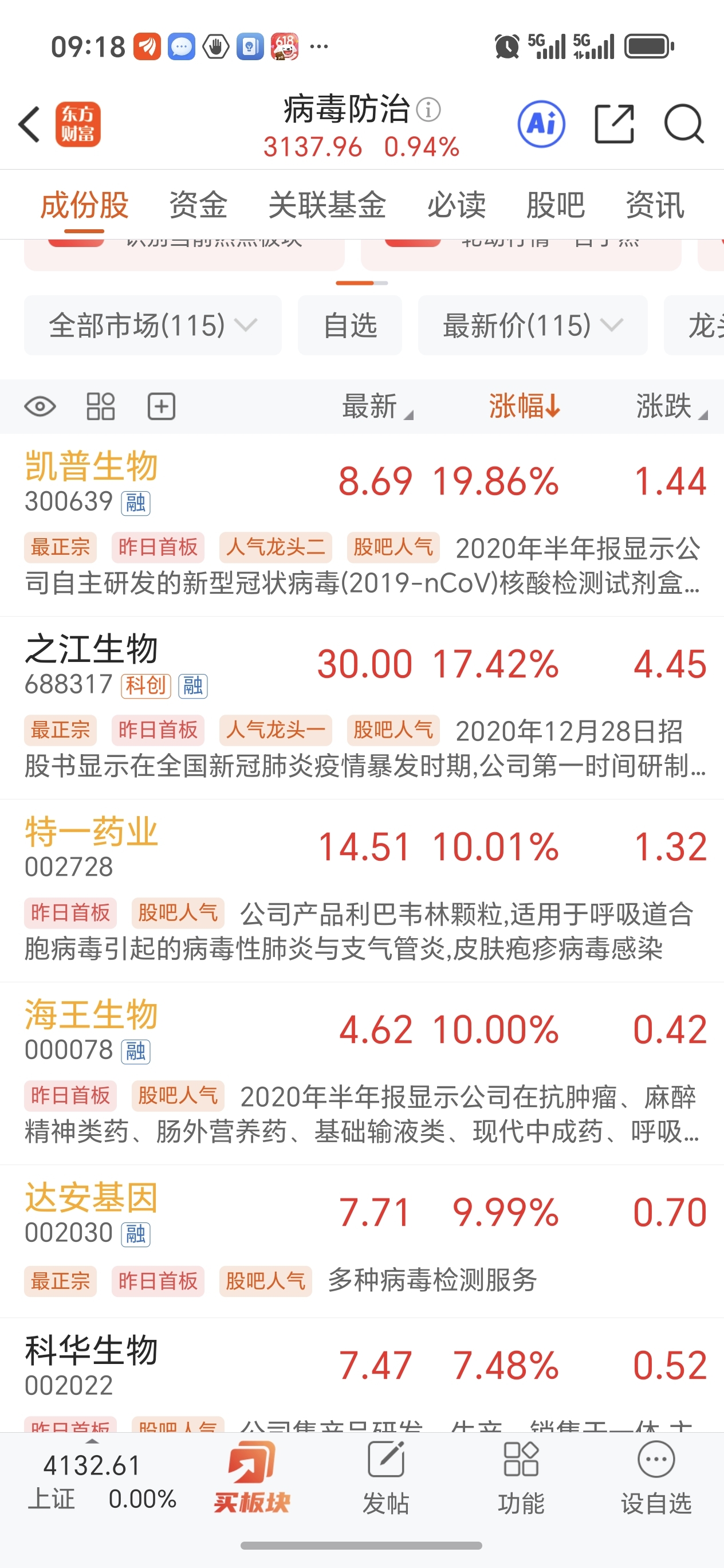 $病毒防治(BK0675)$ 特一,海王,达安,板块风向标