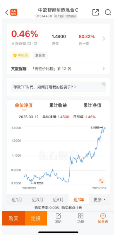 最近,传统车企和新势力车企都在加速布局智能驾驶领域。$中欧智能制造混合C(OTCFUND|015144)$这基简直火得不行,近一个月涨了10.39%!这基金经理真的厉害,业绩也好,现在都限购10万了,感觉再不赶紧上车就来不及了!