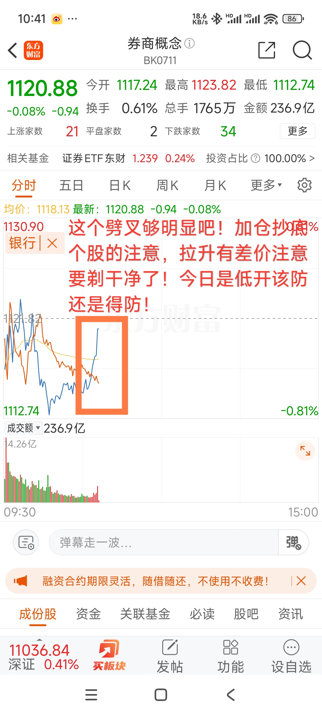 $深证成指(SZ399001)$ $东方财富(SZ300059)$ $上证指数(SH000001)$ 这个噼叉够明显吧!加仓抄底个股的注意,拉升有差价注意要剃干净了!今日是低开该防还是得防!