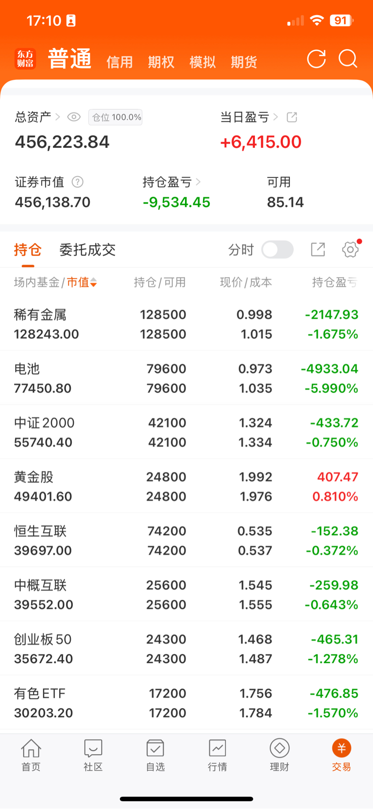 场内ETF组合,今日盈利+6415元,持仓盈亏-9534元,最新市值456223元