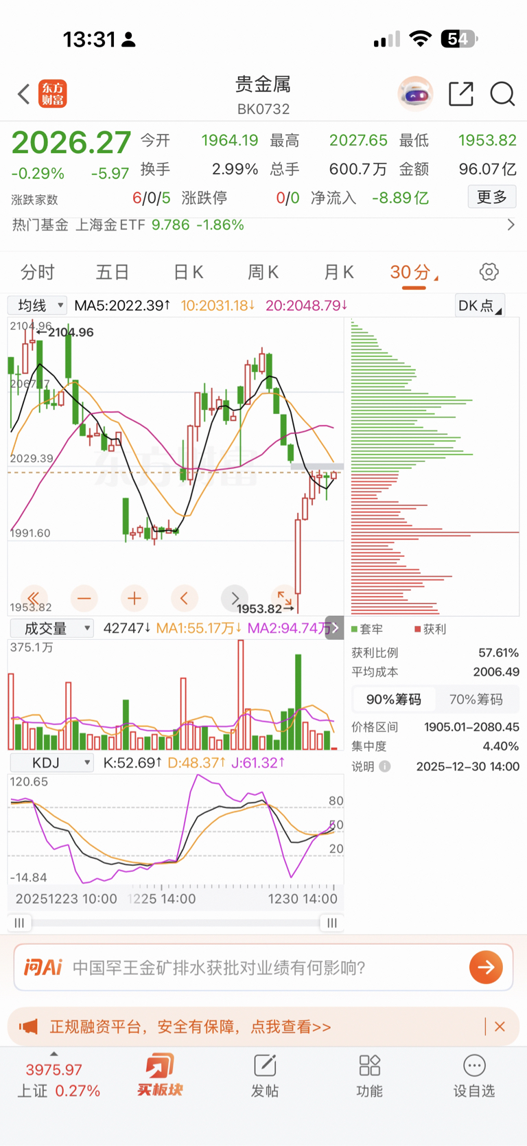 $贵金属(BK0732)$ 30分钟缺口,故意不补,正好是零轴线,今天压制了……