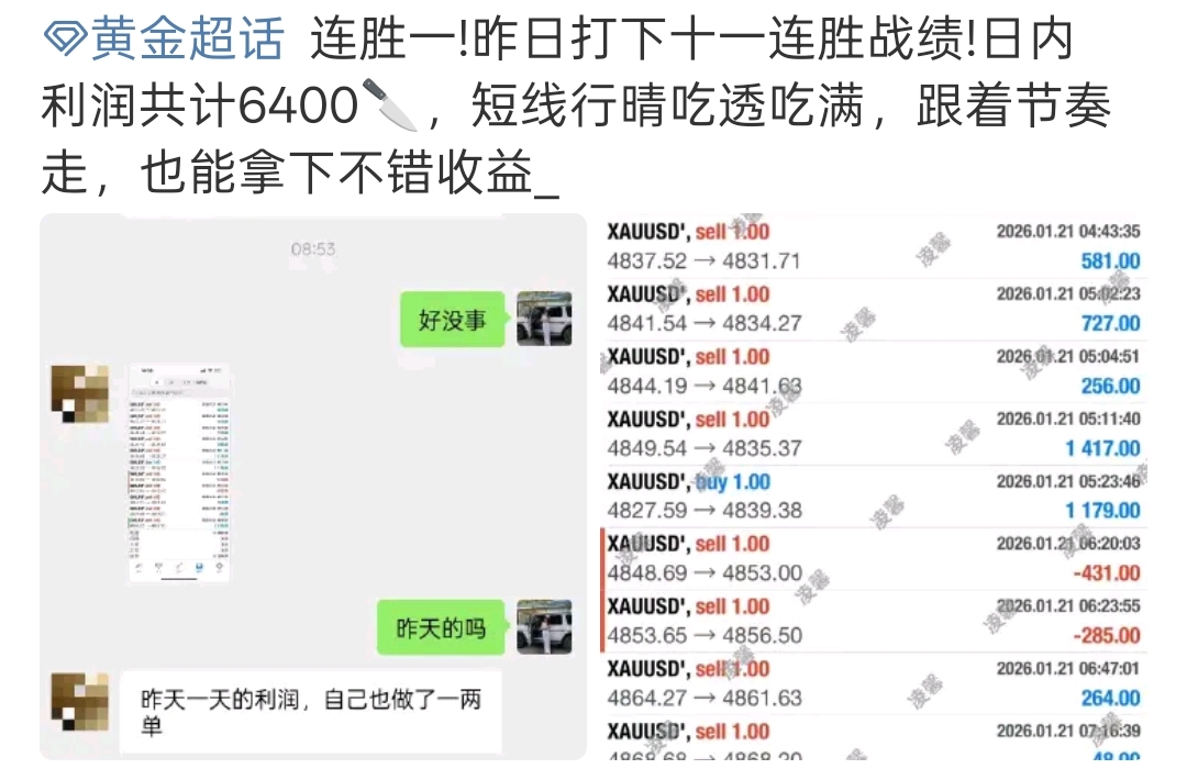 连胜一!昨日打下十一连胜战绩!日内利润共计6400,短线行晴吃透吃满,跟着节奏走,也能拿下不错收益#黄金突破4800美元# $贵金属(BK0732)$