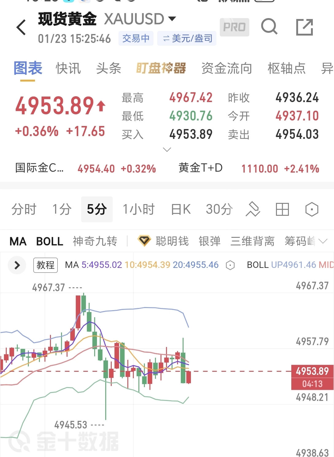 黄金4953位置,直接空了,目标4900-4850附近看长线空,防守4973,这里给到20点,是因为我们长线。