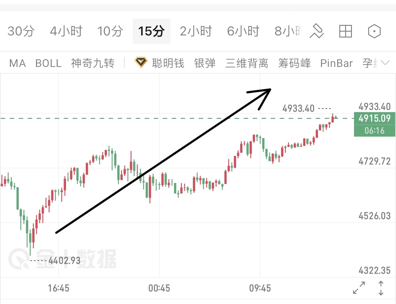 黄金,我说4400就是底部之后,一路延伸至4930,500美元的涨幅!论方向,还