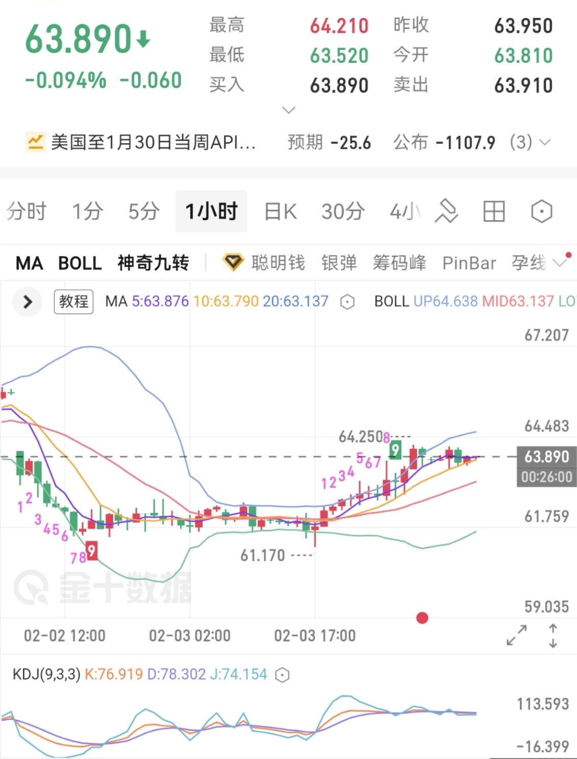 日内下方若能回撤63-62.8亦可再尝试多单参与,止损暂带62.5下方手动止损,目标看64先做减仓改保本止损,剩余持单再看65.5-66预期。