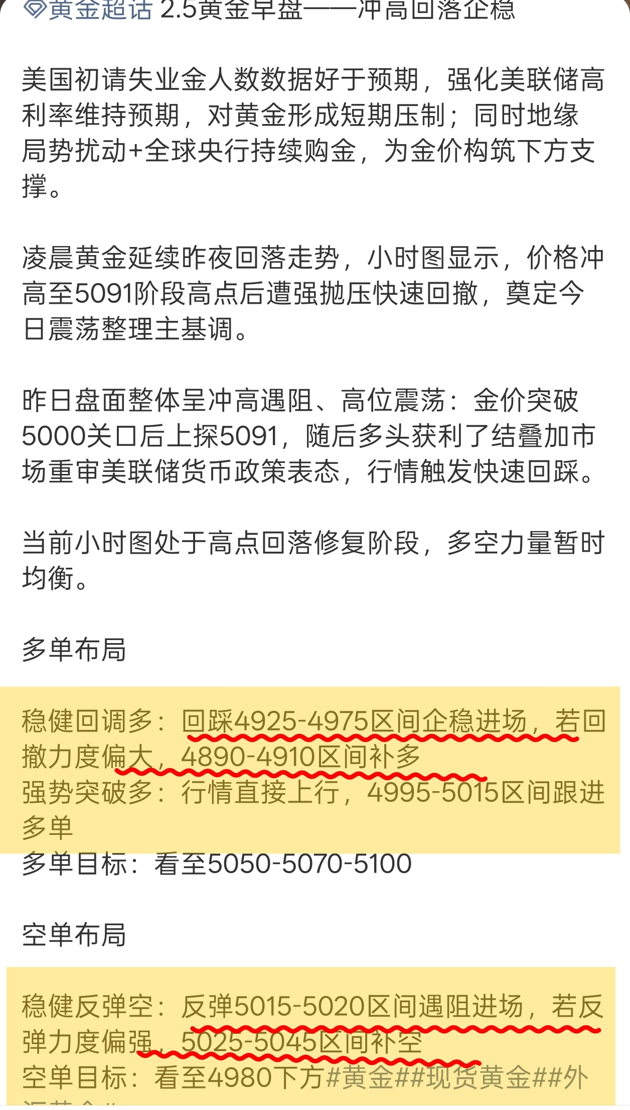 今早策略完美兑现。早盘布局,5000做哆,最高5023,23点空间拿下。同时给出